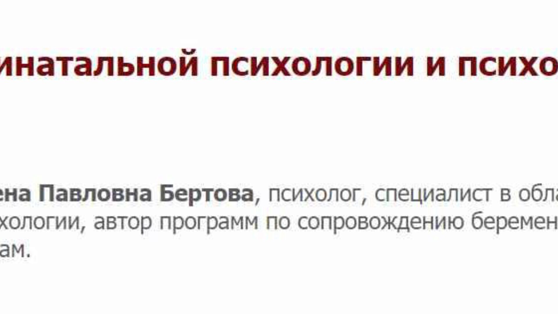 Отзывы о курсе «Основы перинатальной психологии и психокоррекции» от Елены Бертовой