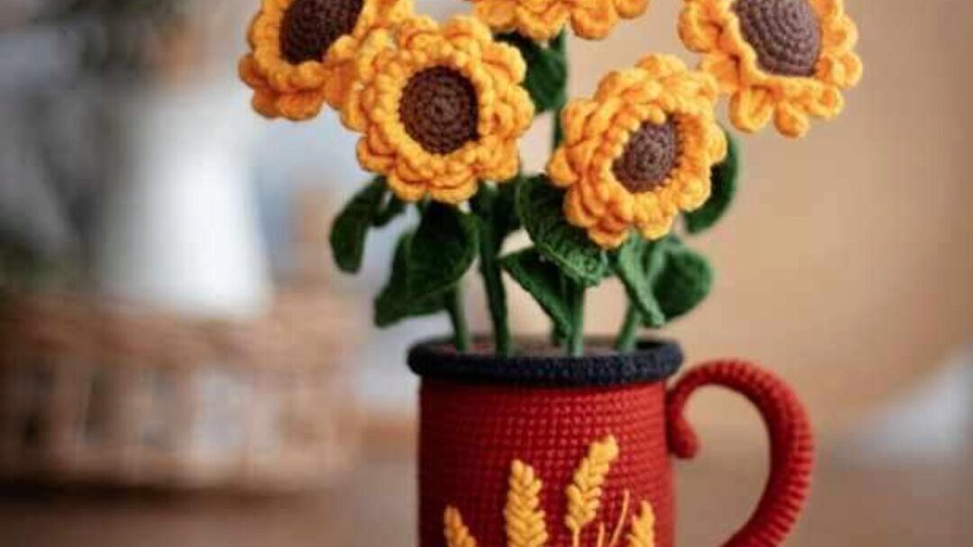 При использовании указанных в мастер-классе материалов подсолнухи в кружке получаются размером: 20-22 см в высоту.