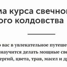 Всего нас ждет 6 полноценных занятий, на которых мы разберем от и до самые лучшие традиции свечного колдовства!