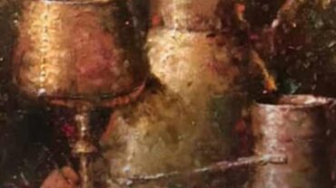 • Как художник добивался светотеневого эффекта золотых поверхностей предметов?