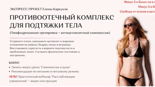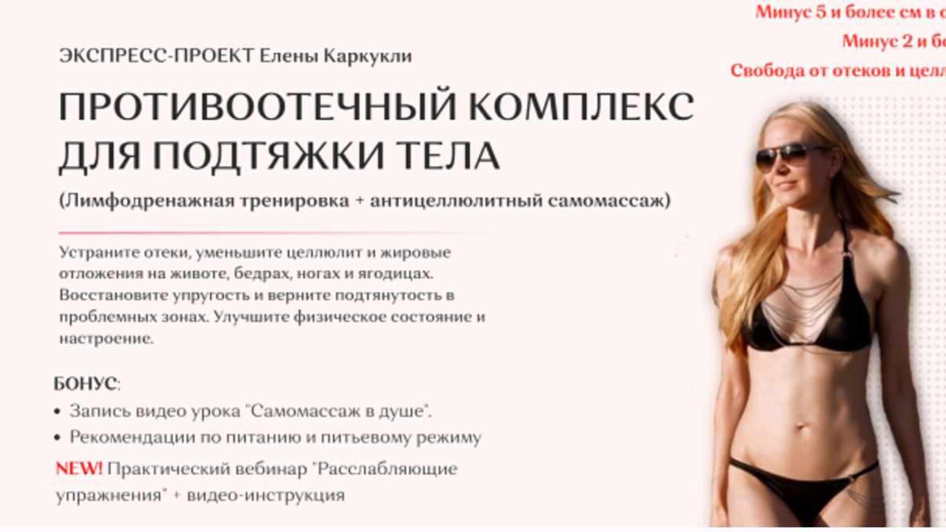 Курс Противоотечный комплекс для подтяжки тела. Тариф Максимальный, автор Елена Каркукли. Вам необходимо, если: