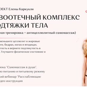 Скачать Противоотечный комплекс для подтяжки тела. Тариф Максимальный (Елена Каркукли) можно напрямую на любое устройство с облака Mail / Yandex / Google. Через торрент (torrent) ничего скачивать не нужно.