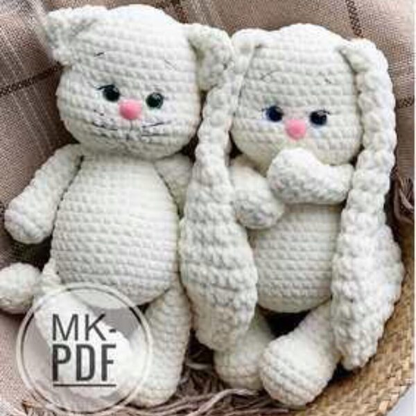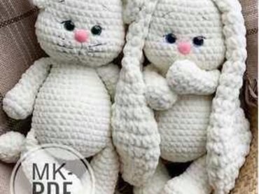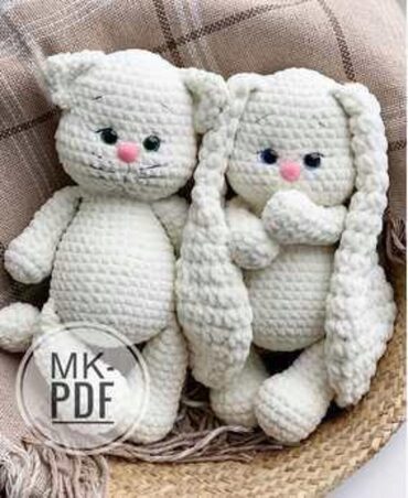Мастер-класс в формате pdf+ видео некоторых сложных моментов, таких как сделать утяжку, ввязать ножки и др. Игрушка цельновязаная, голова и туловище одна деталь, конечности ввязываются по ходу вязания. Пришиваются только ушки и хвостик. Игрушка вяжется снизу вверх. Рост готовой игрушки 28 см.