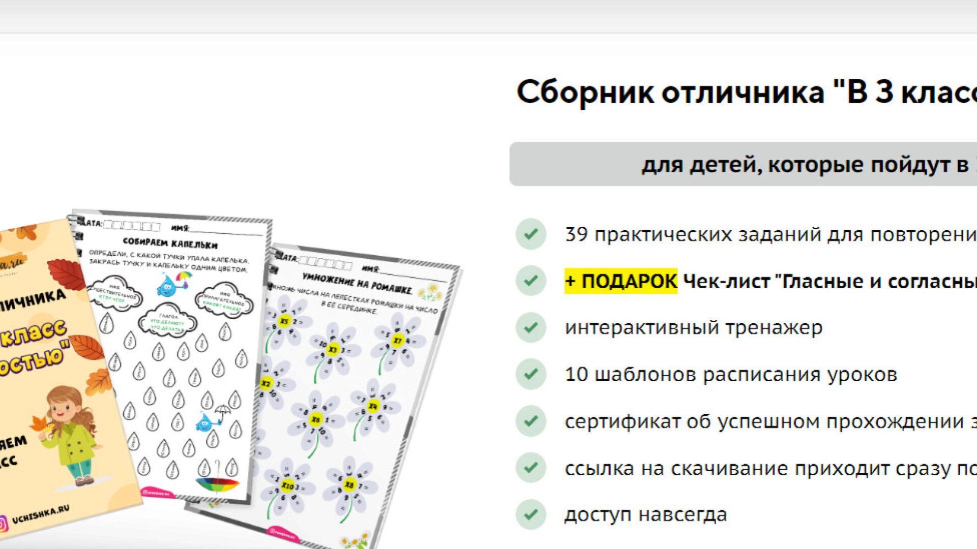 Курс Учишка - Сборник отличника «В 3 класс с радостью», автор Елена Корнилаева. Что вспоминаем и повторяем в сборнике