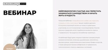 Курс Нейробиология счастья: как перестать заниматься самоедством и начать жить в радость, автор Елена Корнилова. Прошлый вебинар «Нейробиология любви: как перестать страдать и стать счастливым» вышел крайне удачным. Я получила огромный отклик не только от довольных участников, но и от психологов и психотерапевтов. Многие просили придумать нечто подобное в контексте стресса и тревожности. Так родился этот вебинар-практикум.