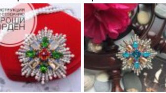 Это пошаговая инструкция по созданию броши-ордена из бисера и кристаллов Swarovski. МК представлен в виде файла со списком материалов и инструментов, подробными фотографиями, пошаговым описанием процесса. Также в инструкции вы найдете видео-урок, в котором показан процесс работы над самыми сложными