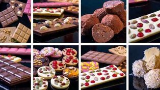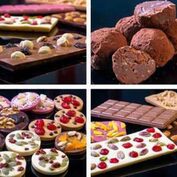 ТРЮФЕЛИ: 1. Кокос/лайм 2. Голубой трюфель (сырный) 3. Сыр/мед (с сыром камамбер) 4. Матча/малина 5. Пьяная вишня 6. Чай с мятой 7. Тропический трюфель 8. Лесной трюфель (черника и ягермейстер) 9. Классический трюфель с ликером 10. Кофе с печенькой (с заварным кофе) 11. Гиннесс 12. Текилла с солью