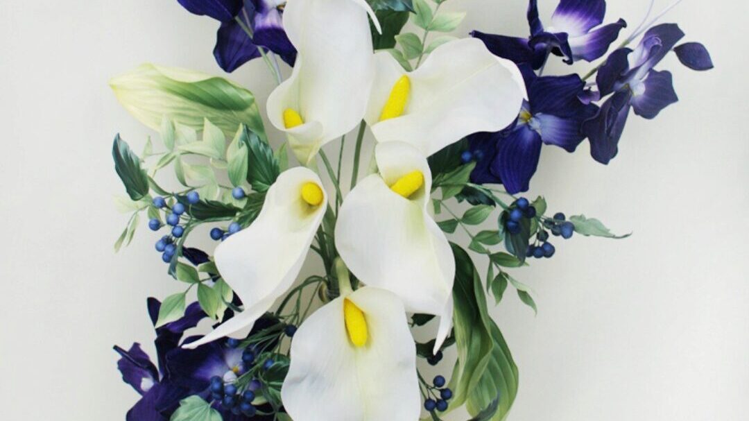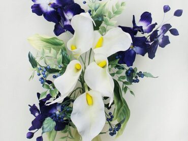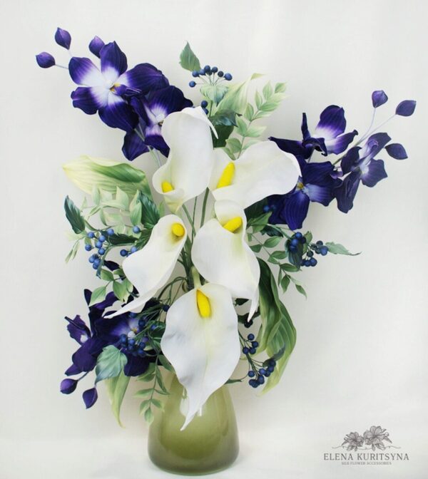 - видео мастер-класс «Девичье счастье» (каллы, орхидеи, лист хосты, веточка с ягодками, зеленая веточка)
