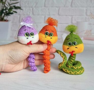 Игрушка бескаркасная! Самостоятельно сворачивается в спираль. Идеально держит форму. Длина Змейки по спинке около 35 см. Змейка не раскручивается, диаметр витка примерно 5 см. Расход пряжи Himalaya dolphin baby около 6-7 г основного цвета и 4-5 г дополнительного. МК в формате pdf содержит: 13