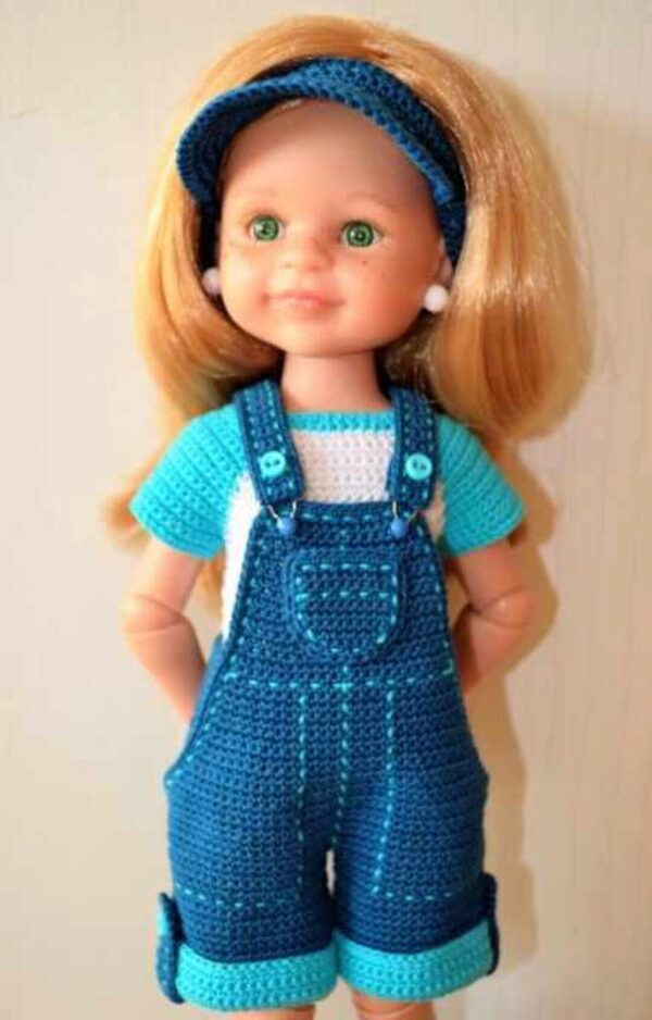 Описание по вязанию джинсового костюма для кукол Паола Рейна! Вы свяжете: 1. Джинсы/брюки 2. Пиджак 3. Топ 4. Кепку Описание в формате PDF, его можно распечатать или вязать с планшета/телефона. 22 страницы и более 50 подробных фото, а также схемы. Пиджак с отложным воротником, накладными карманами,