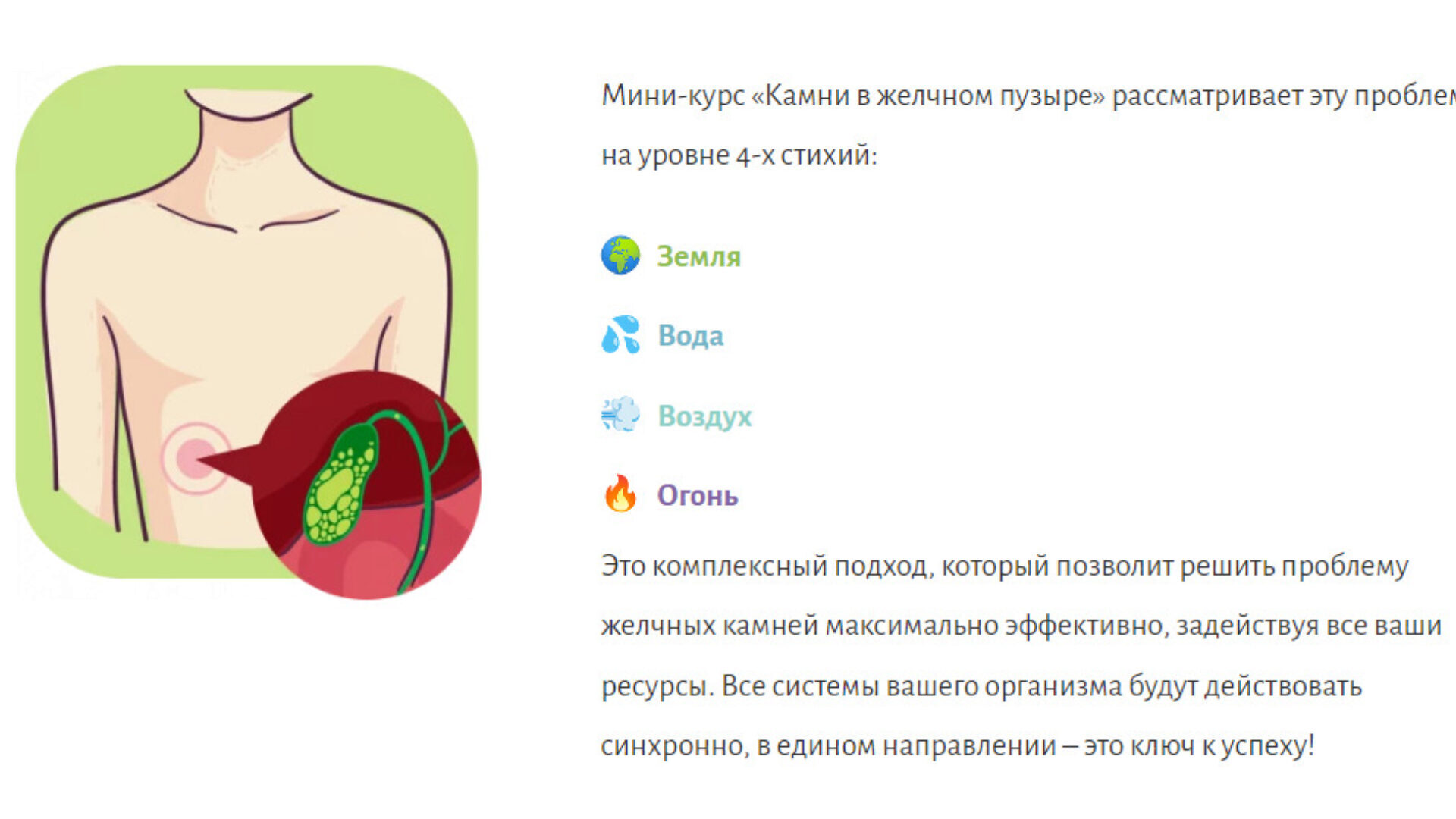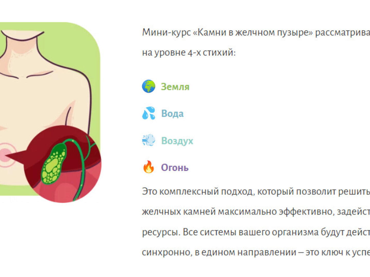 Этот мини-курс для тех, кто хочет знать как не допустить образование желчных камней и что делать, если они уже есть с помощью природных помощников на 4-х уровнях.