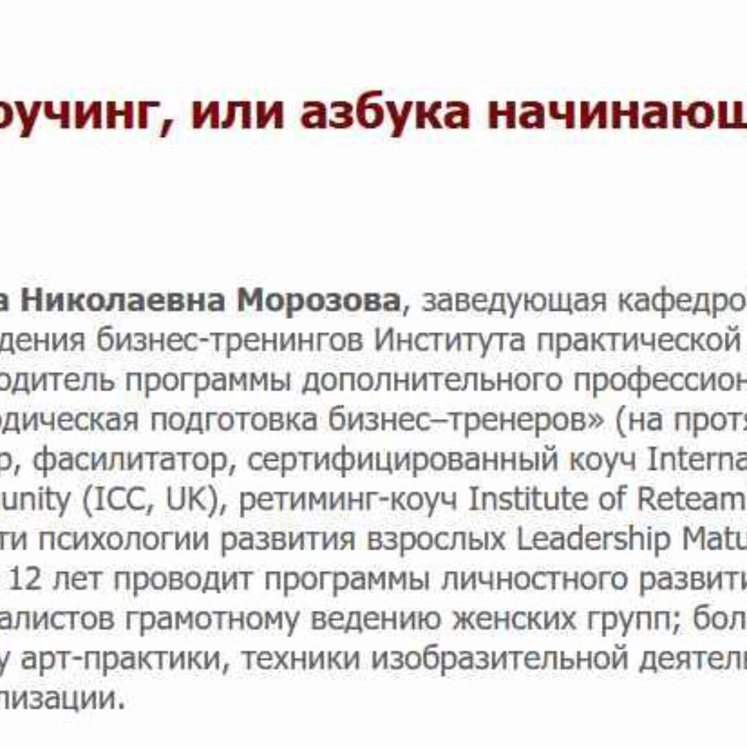 Елена Морозова «Введение в коучинг, или азбука начинающего коуча» — Иматон слив скачать