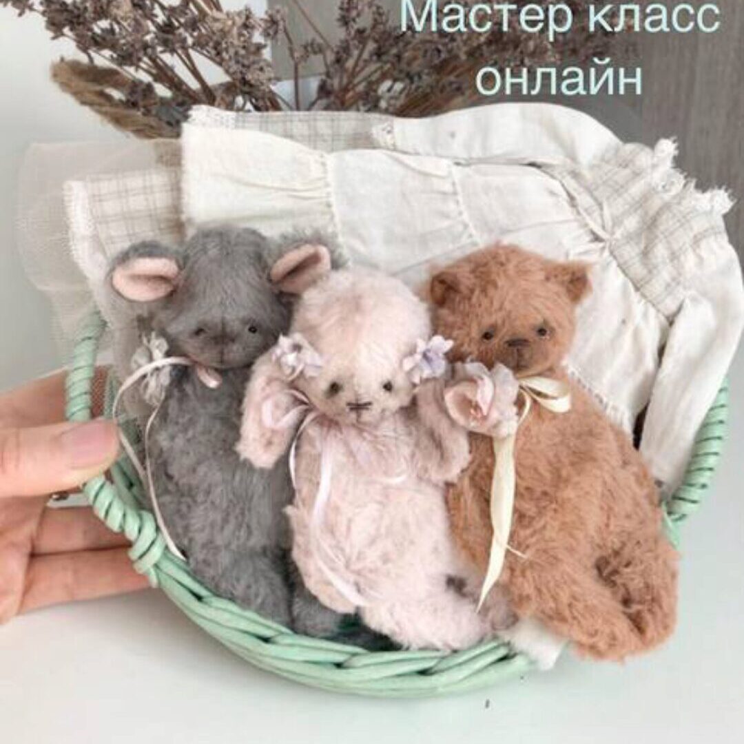 В мастер класс входит выкройка 3 в 1 ( мишка, мышка, зайка), и видео процесс работы ( прямых эфиров нет, поэтому шить можно в любое удобное для вас время)