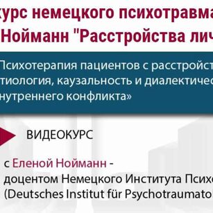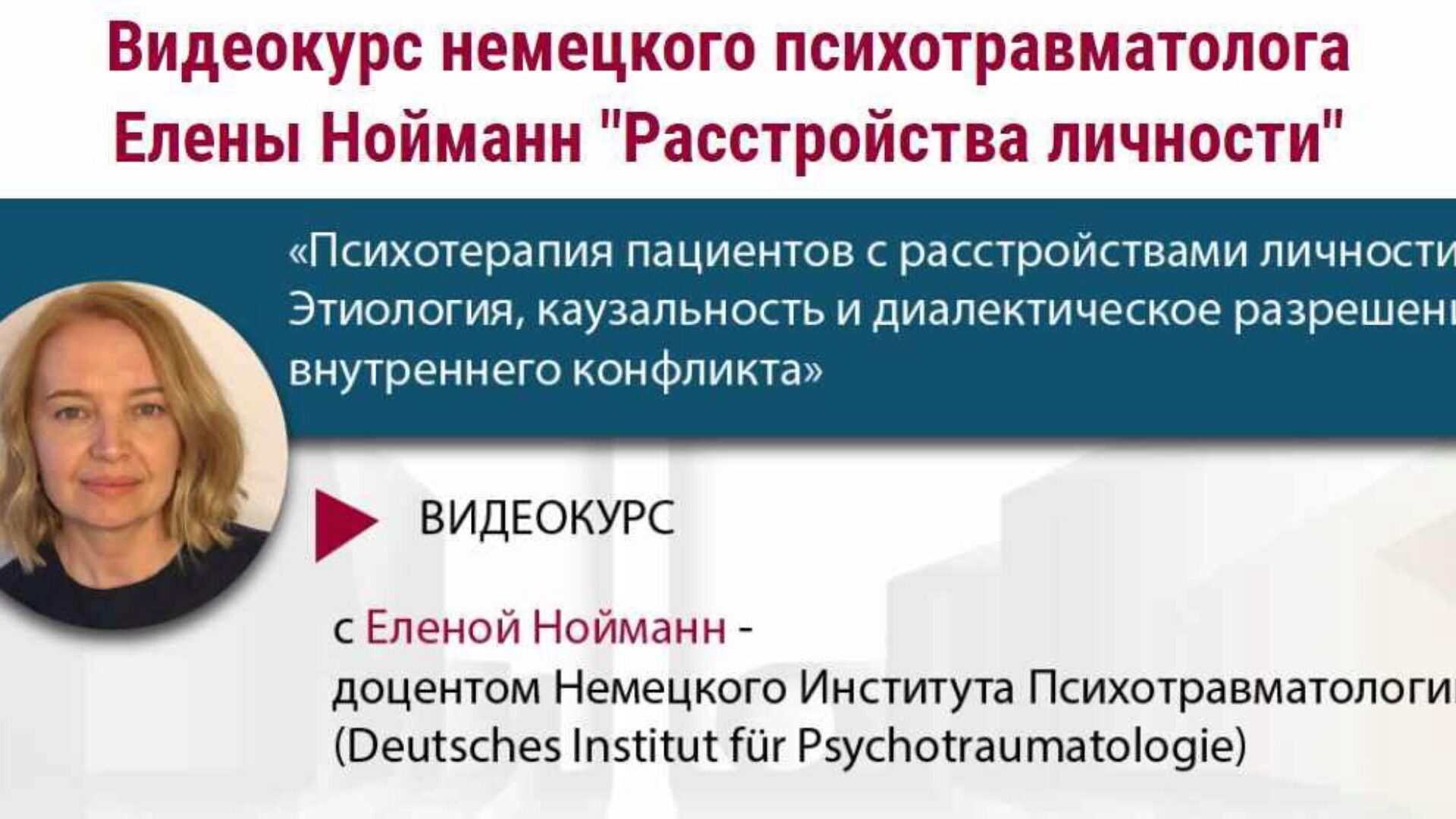 Онлайн семинары немецкого психотравматолога Елены Нойманн Психотерапия пациентов с расстройствами личности.Этиология, каузальность и диалектическое разрешение внутреннего конфликта Данный обучающий курс состоит из вводного обобщающего семинара с последующим углублением в природу каждого отдельного