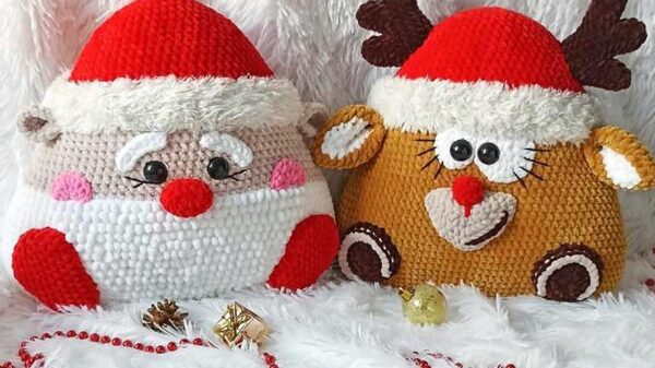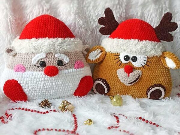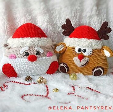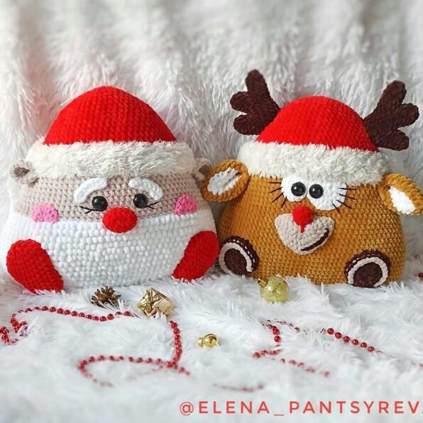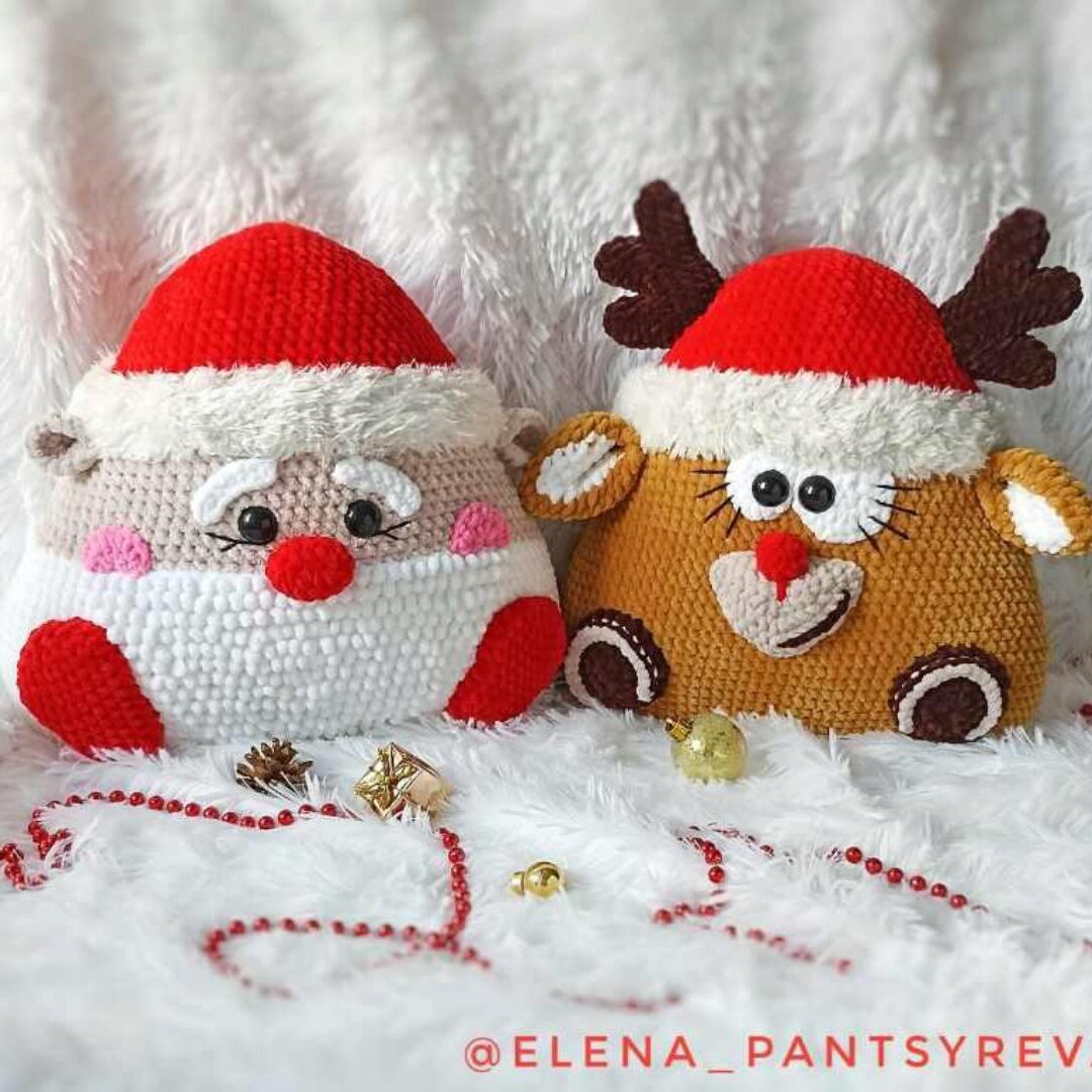 Елена Панцырева «Подушка Зверушка Новогодняя. Олень и Дед Мороз крючком» слив скачать