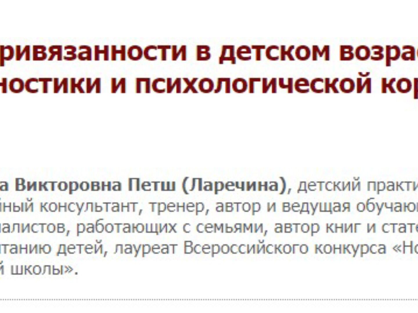 Елена Петш «Нарушение привязанности в детском возрасте: методы диагностики. Март 2020» — Иматон слив скачать