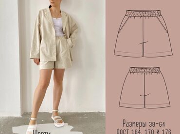 Курс Шорты Лера. Размер 38-64. Рост 164, автор Елена Пленкина. Женские шорты среднего объема, карманы с отрезным бочком, двойной притачной пояс из основной ткани, внутри пояса эластичная тесьма шириной 5 см, длина шорт до середины бедра.