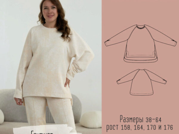 Курс Свитшот Ровена. Размер 38-64. Рост 170, автор Елена Пленкина. Выкройка представлена в размерах 38-64 на рост 158, 164, 170 и 176 см.