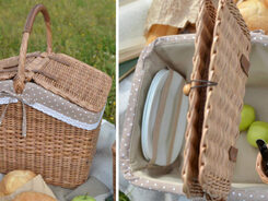 Вместительная, крепкая, функциональная, а кроме того - очень красивая! Тарелки удобно крепятся на одной из стенок, столовые приборы располагаются в отдельном стакане, который как влитой встаёт в угол корзины.