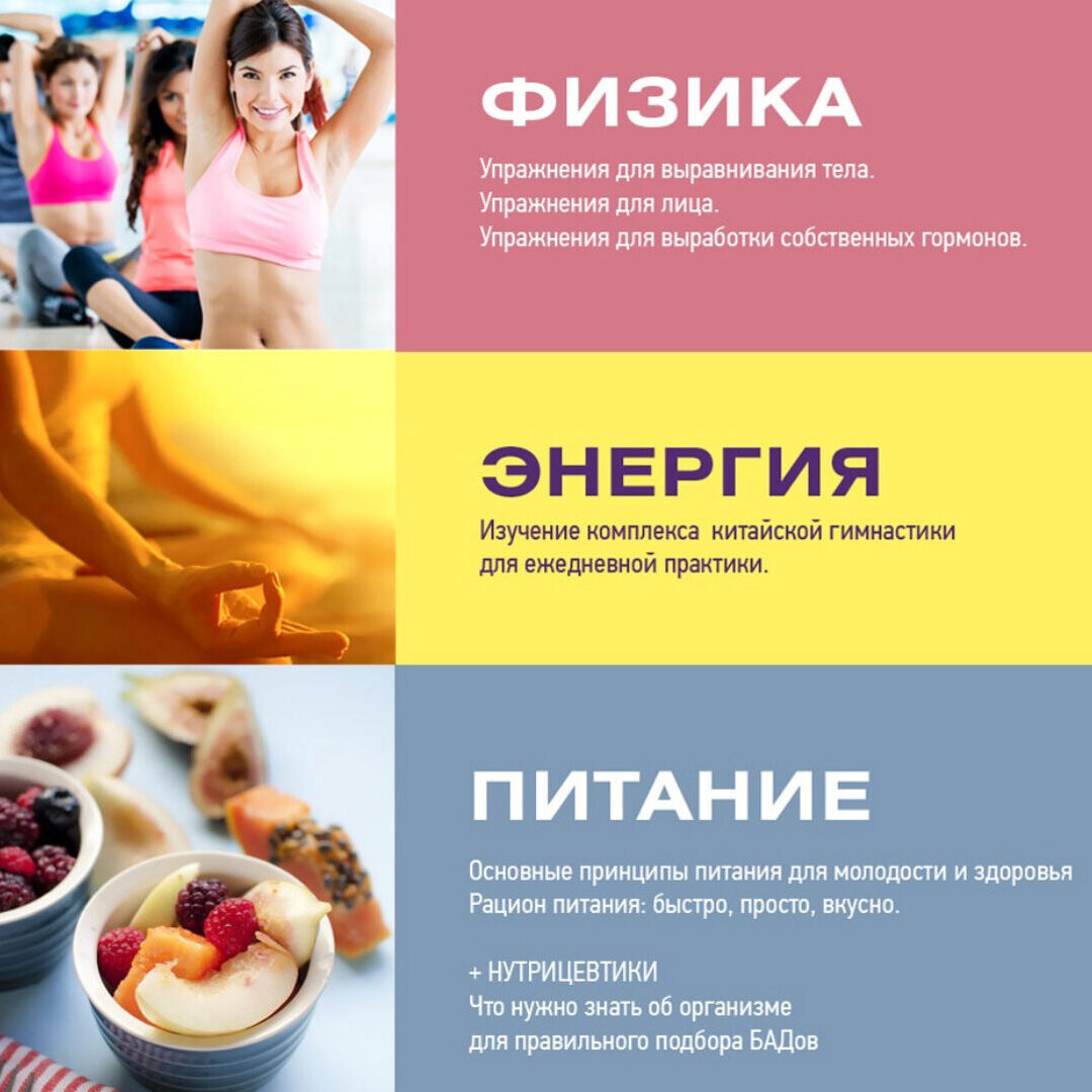 Разрабатываем: план действий по профилактике старения организма. Изучаем: рекомендации по выбору нутрицевтиков. Отрабатываем: упражнения, способствующие выработке собственных гормонов. Получаем для ежедневной практики: чек-лист ежедневных действий профилактики старения. anti-age схему нутритивной