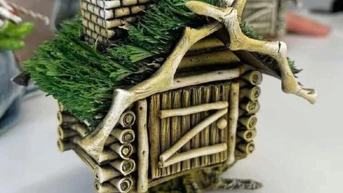 Лепки избушки из самоотвердевающей массы собственного изготовления.