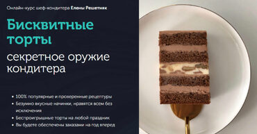 Тариф Стандарт Урок 0 Инструменты и ингредиенты Урок 1 Торт Смородина-Маскарпоне Урок 2 Шоколадный торт Урок 3 Торт Клубничный крем Урок 4 Торт Малина-Лимон Урок 5 Торт Миндаль-Кокос Доступ на 1 год Рабочая тетрадь с рецептами и конспектами Таблица для расчета себестоимости Калькулятор кондитера