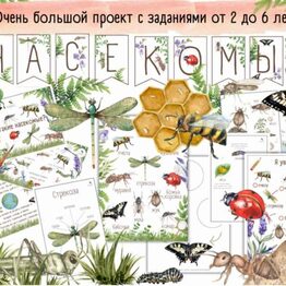 Курс busy-bee - Большой проект Насекомые, автор Елена Самсонова. Проект «Насекомые» подходит для деток 2-6 лет. Здесь есть общая часть и папки с заданиями по возрасту и уровню знаний. Выбирайте и печатайте то, что подходит вашему ребенку.