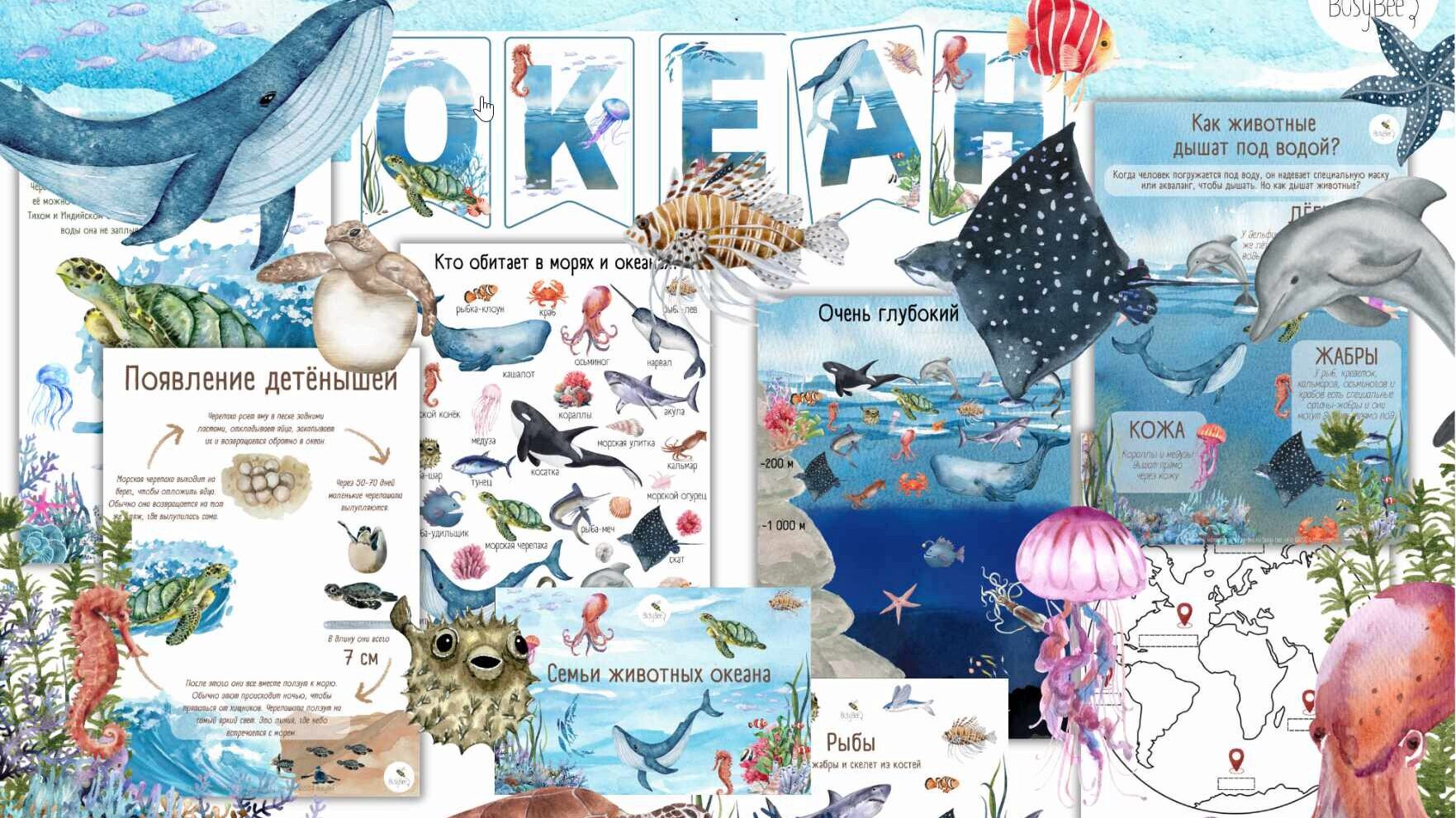 Узнаем, что такое океан и какие удивительные животные там обитают, опустимся на самую глубину, выясним, как дышит под водой медуза и зачем выныривает кит, понаблюдаем за развитием детёнышей черепахи и поиграем в океанский мемори.