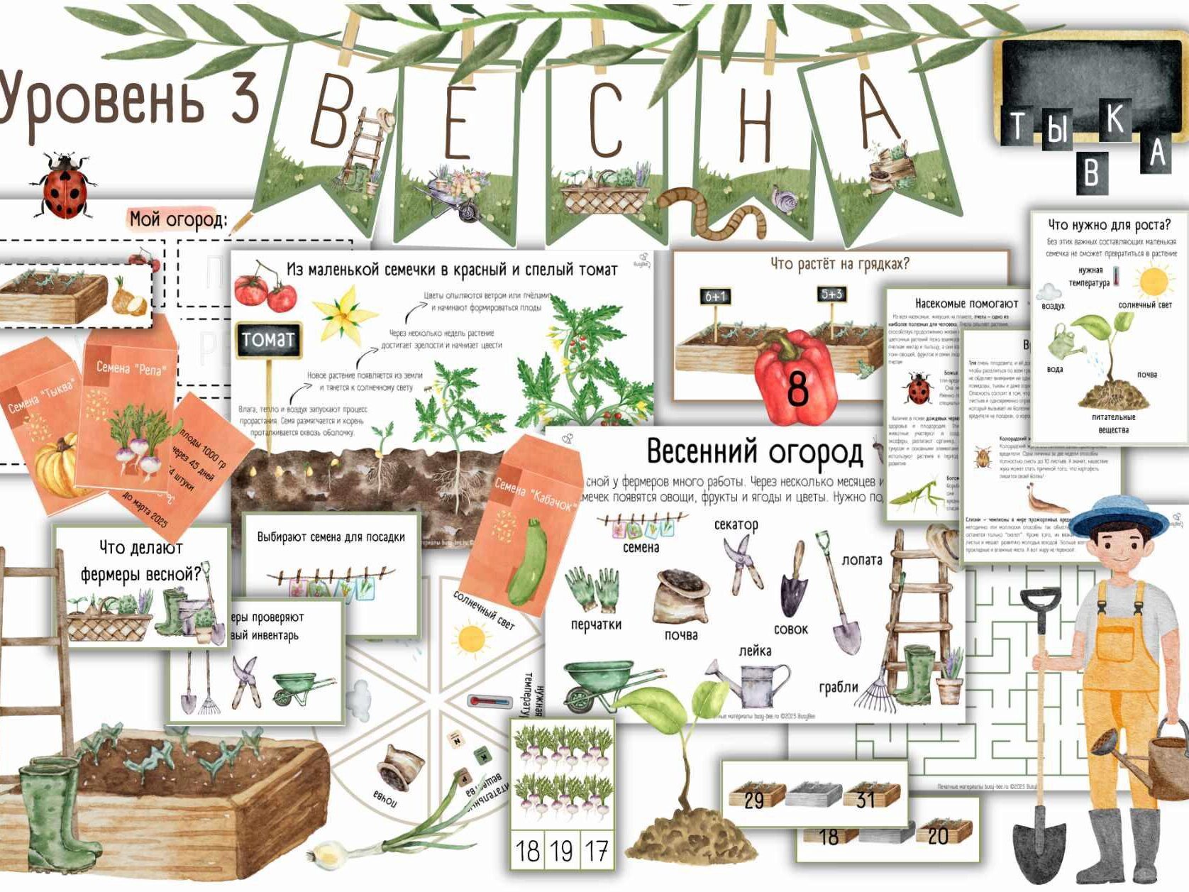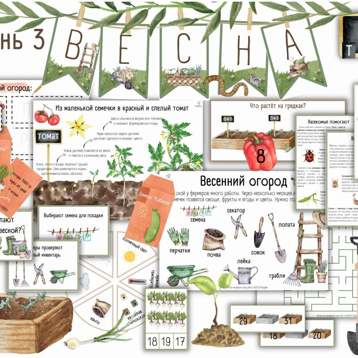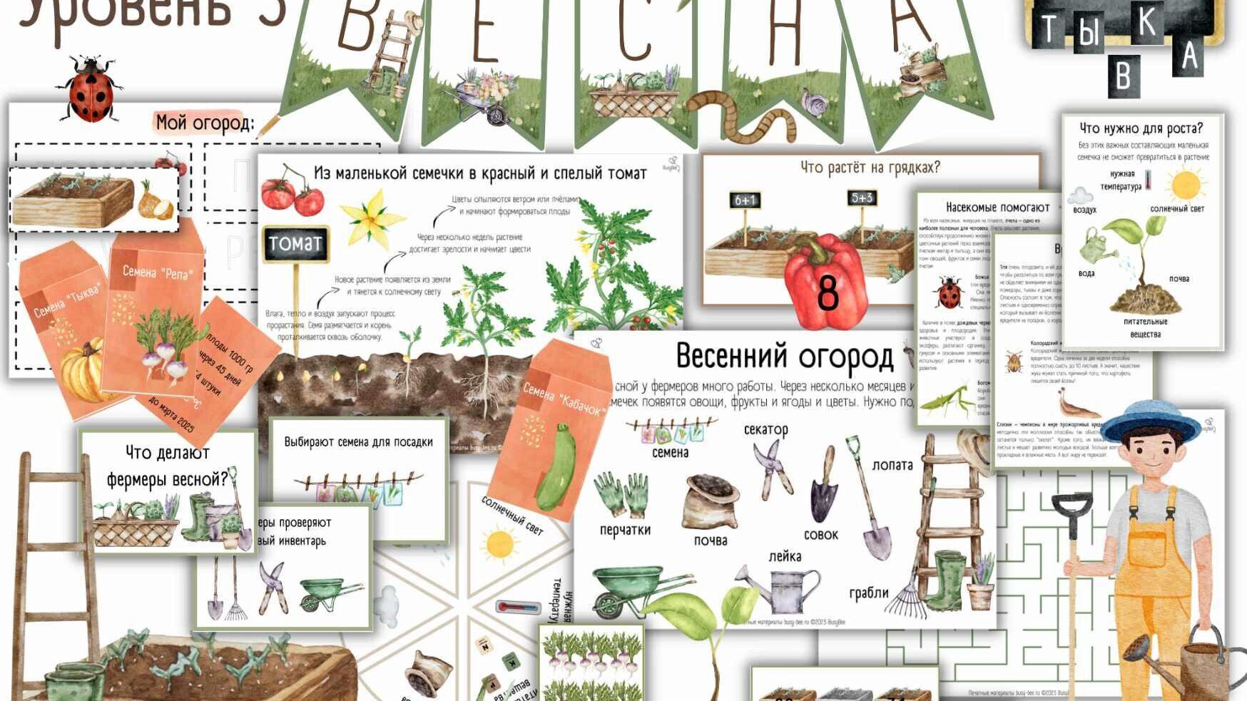Что происходит весной? Жизнь оживает. Появляются самые первые цветы. Прилетают птицы, начинают делать гнёзда, откладывать яйца. Появляется всё больше насекомых. На деревьях появляются почки, первые листочки и цветы. Это время для сада и огорода. Посадить цветы на нужную по размеру грядку, собрать