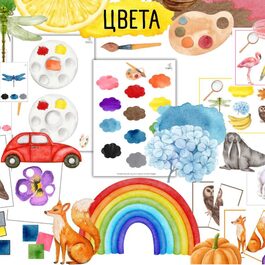 Кто-то начнет с одного цвета, а кто-то сразу приступит к поиску красной машинки и розового фламинго, распределит по цветным облакам зеленую бабочку, черного кота и синего попугая. Есть возможность двигаться в нужном темпе.