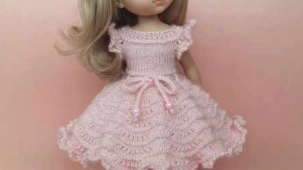 PDF МК для кукол Паола Рейна. Следуя инструкции, вы свяжете ажурное платье и подъюбник с кружевом. Составлено попетельное порядное текстовое описание вязанияи и графические схемы. Текстовая информация сопровождается фотографиями. По готовым рассчётам вяжется очень просто и быстро. Уровень сложности