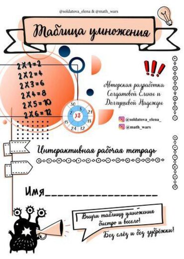 Да, Вы можете получить получить бесплатно фрагмент курса «Таблица умножения. Авторская рабочая тетрадь», просто напишите на почту или в телеграм