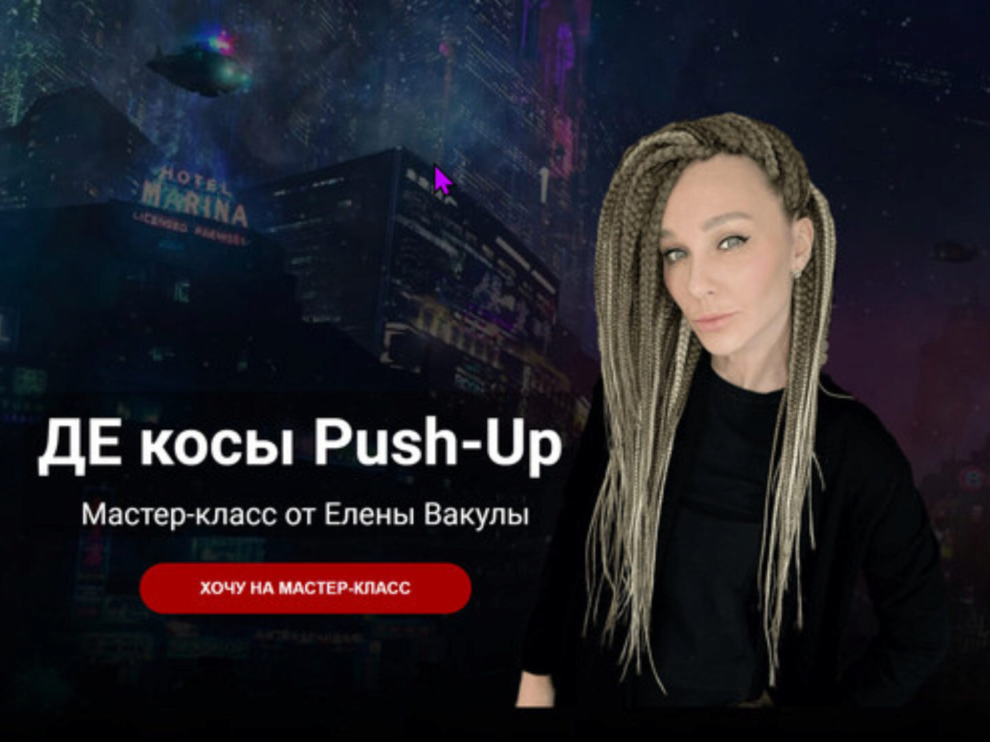 Мастер-класс Елены Вакулы по изготовлению Push-Up кос со свободным концом Мастер-класс разбит на пошаговые уроки, из которых ты узнаешь: - какие инструменты и материалы тебе понадобятся для изготовления (в этом списке уже учтен тот момент, что ты можешь быть не из России и для тебя есть аналоги) -
