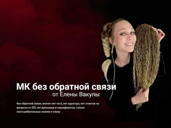 Вы получаете полный курс / тренинг со всеми материалами, но без обратной связи и поддержки автора Елены Вакулы — именно это позволяет предложить такую выгодную цену. Вы учитесь в удобном ритме, без переплаты за сопровождение.