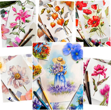 Летний марафон с Юлией Барминовой - техники акварели от скетчинга до ботаники На примере глицинии, гортензии и роз, одних из самых интересных растений с точки зрения сложных цветовых переходов и композиционных решений мы пройдем особенности акварельной техники в живописи цветов, построение формы,