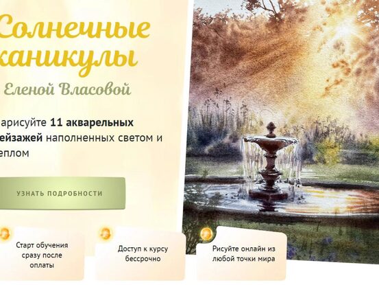 В процессе вы освоите технику работы с акварелью для передачи солнечного света и сможете написать 11 ярких впечатляющих сюжетов.