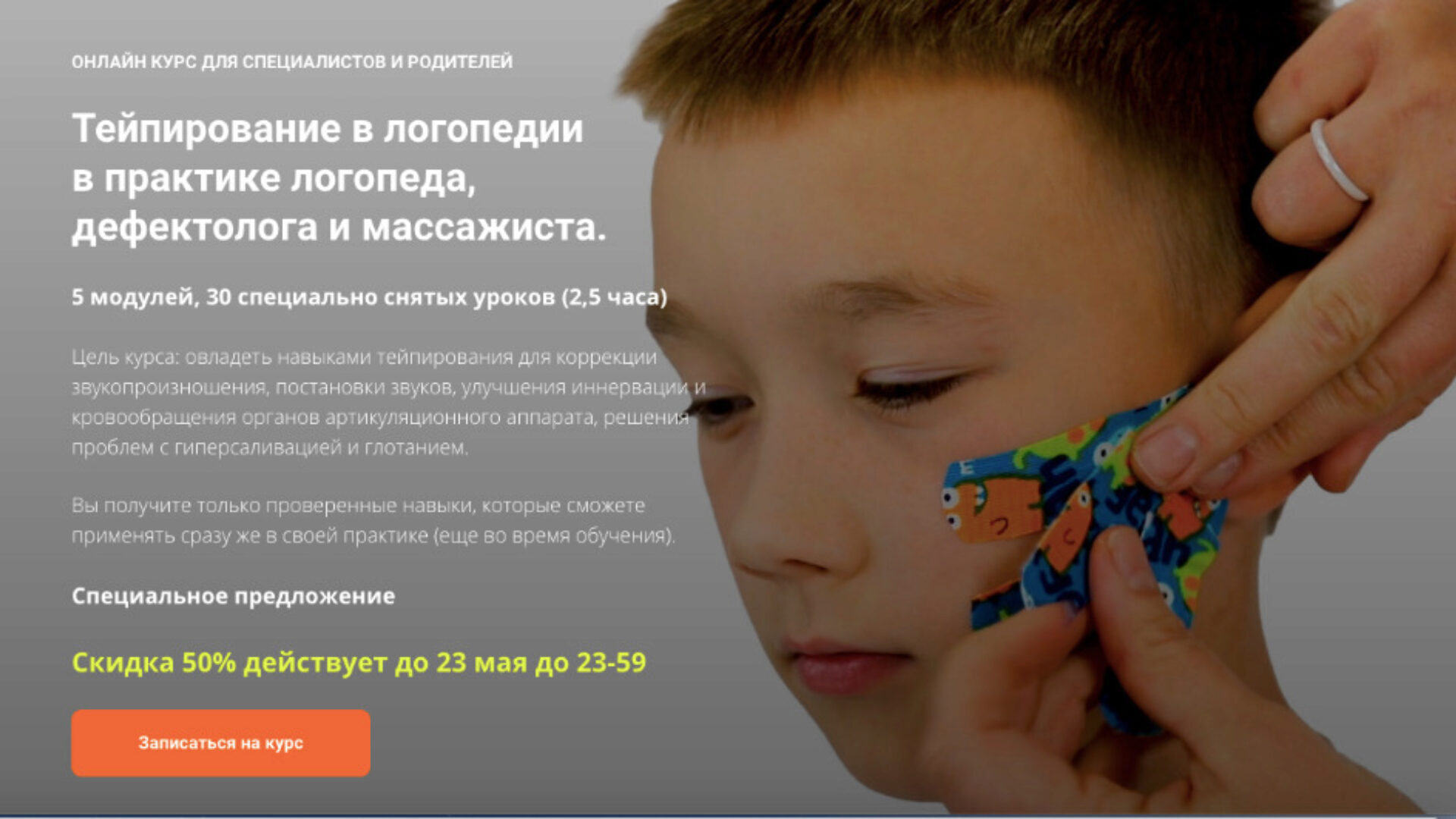 Цель курса: овладеть навыками тейпирования для коррекции звукопроизношения, постановки звуков, улучшения иннервации и кровообращения органов артикуляционного аппарата, решения проблем с гиперсаливацией и глотанием.