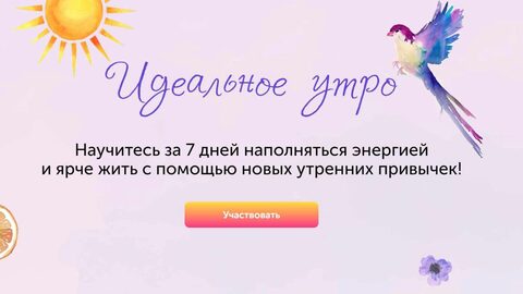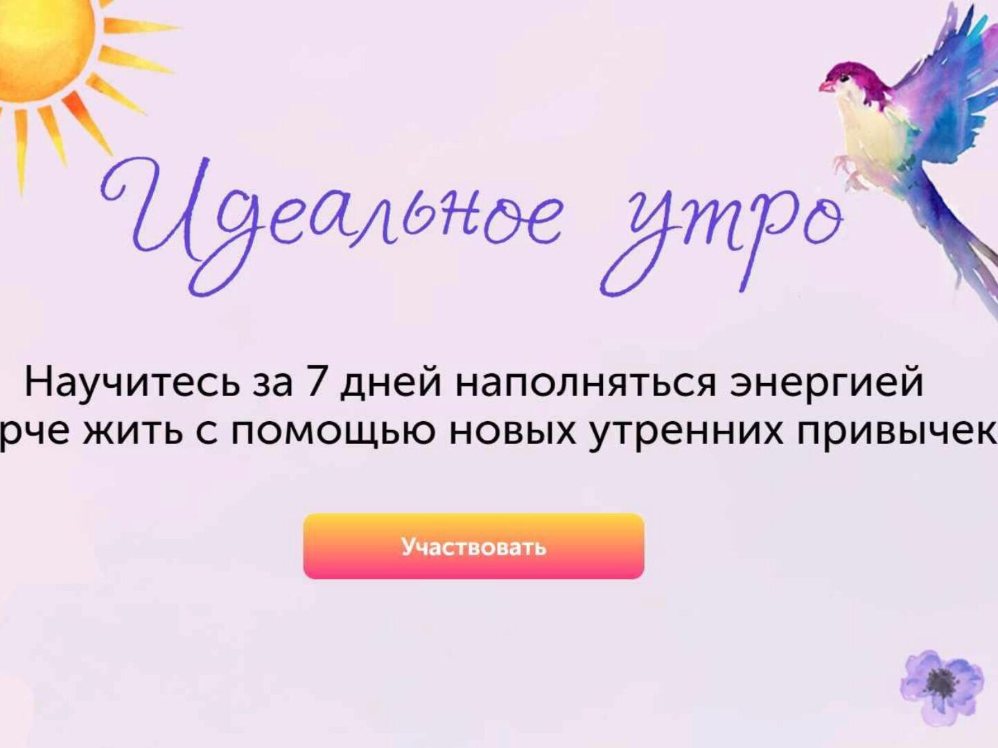 В течение недели вы «наработаете» практики идеального утра. Вы сможете выполнять их каждое утро для успешного старта дня.