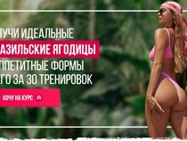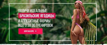 пакет Базовый 3 вида программы с резинками, дома, в зале 30 видео тренировок с голосовым сопровождением тренера Меню на месяц Этот курс для тебя, если: ты устала от апельсиновой корки на ягодицах и дрябышей на бедрах хочешь похудеть/набрать вес и подтянуть тело с акцентом на ягодицы хочешь сделать