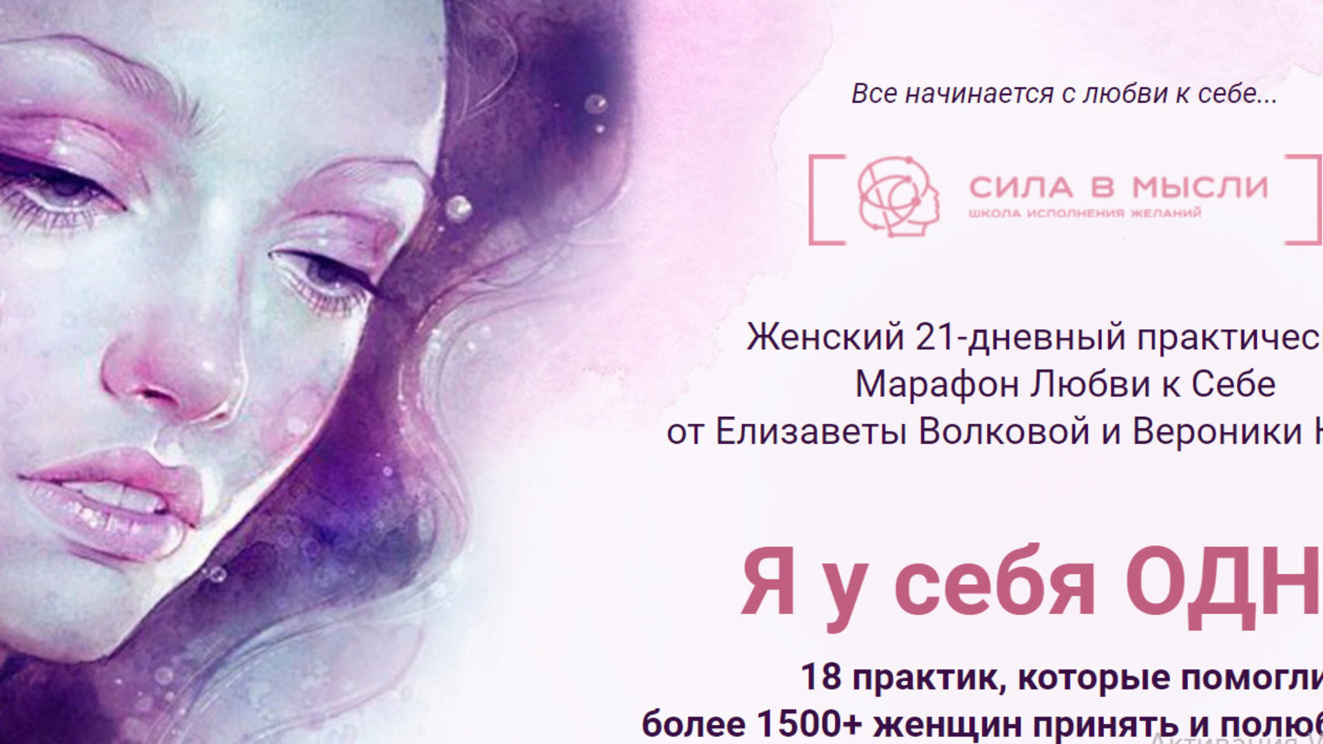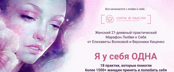 Курс Женский 21-дневный практический марафон любви к себе, автор Елизавета Волкова, Вероника Киценко. Женский 21-дневный практический Марафон Любви к Себе от Елизаветы Волковой и Вероники Киценко «Я У СЕБЯ ОДНА» - 18 практик, которые помогли более 1500+ женщин принять и полюбить себя