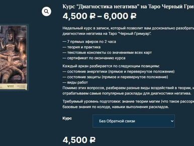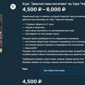 Отзывы о курсе Курс «Диагностика негатива» на Таро Черный Гримуар от Есении Ушаковой