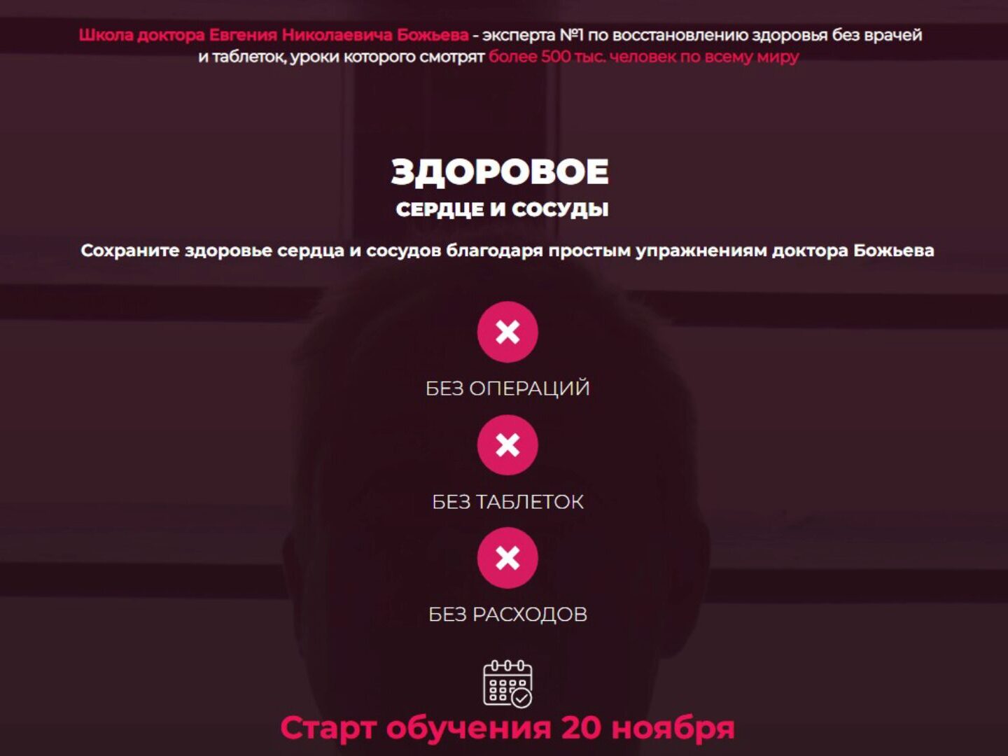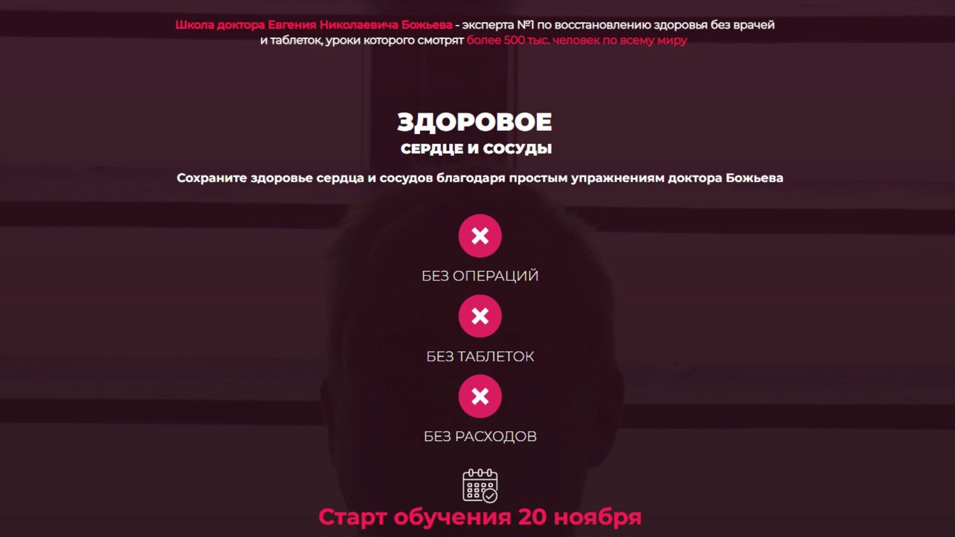 Тариф Самостоятельный Школа здоровья Евгения Божьева Простая система быстрого восстановления утраченного здоровья без операций без таблеток без расходов Старт обучения 1 октября * для тех, кто хочет оставаться здоровым и сохранять активность в любом возрасте Ваш главный шаг к здоровью Любой человек