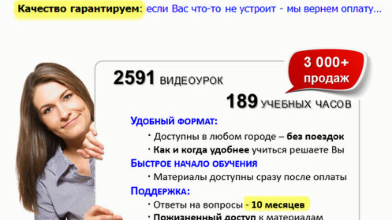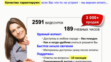 - 1254 видео-урока, 95 учебных часов (эквивалент: более 2 недель очных занятий)