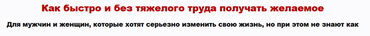 И тебе тоже данная технология даст все о чем ты мечтаешь. Больше не надо составлять неработающие «доски желаний», каждый день визуализировать свои цели. Сегодня все изменится для тебя. Тебе нужно будет ОДИН РАЗ выполнить эту технологию. Ты не ослушался. На одну твою мечту сделать технику только один раз! Этого достаточно!