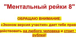 «Ментальный рейки 8» работает с антиэнергией и защищает от любых порч и существ по 8 пласт 3 категорию. Обладает самой большой мощностью и скоростью выполнения задач.
