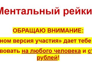 Ментальный усилитель - видеозаклинание Усиливает ментальное воздействие, ваши мыслеформы. Отзыв «После однократного использования значительно т.е. в разы расширилось сознание, примерно на 20-40 минут. Однако постэффект в течении суток был крайне неприятен на уровне ментала. Впечатляюще! Применять