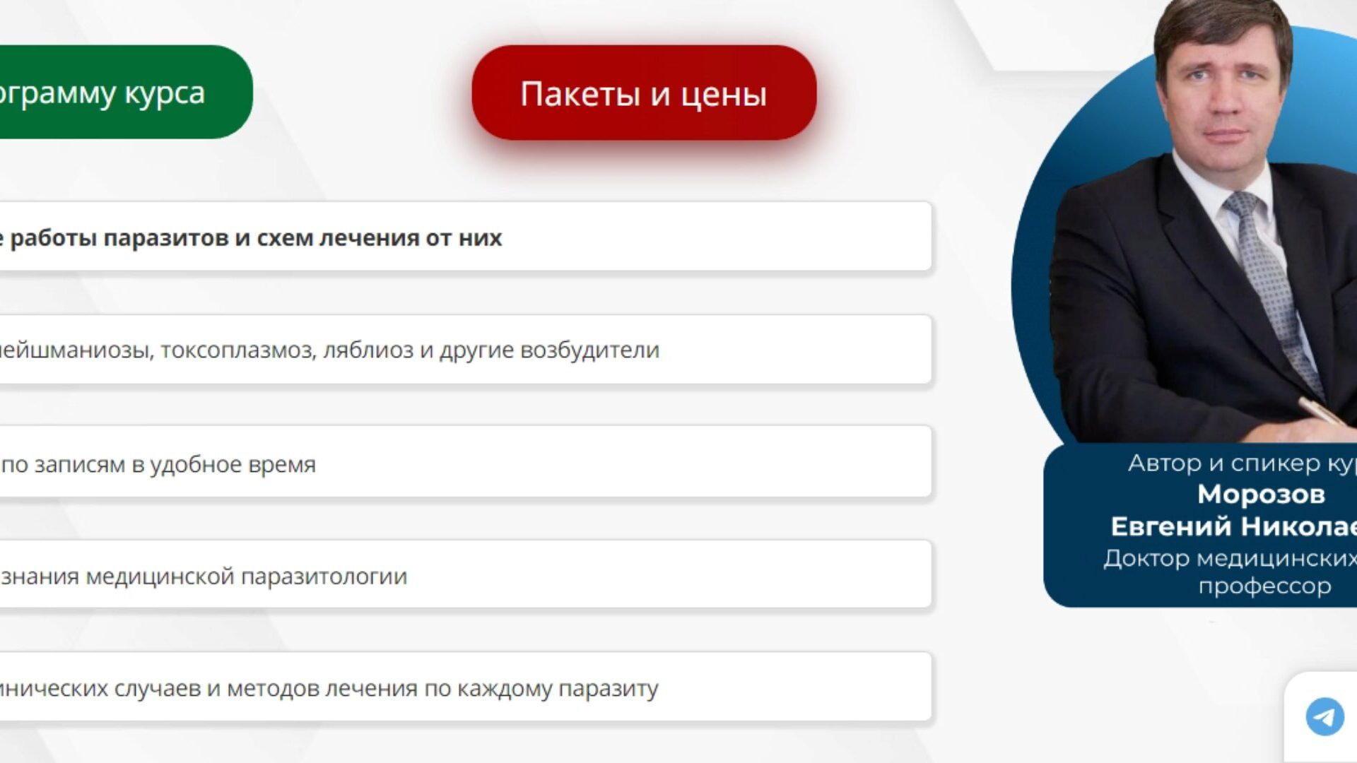Да, Вы можете получить получить бесплатно фрагмент курса «Фундаментальная медицинская паразитология», просто напишите на почту или в телеграм