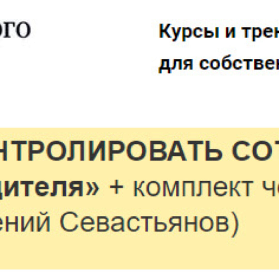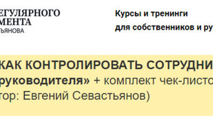 - Тренинг Евгения Севастьянова «КАК КОНТРОЛИРОВАТЬ СОТРУДНИКОВ: правила и приёмы для руководителя» (3 часа видео с демонстрацией использования инструментов контроля на практике) + аудио-версия в формате mp3 для тех, кто предпочитает слушать в машине или во время занятия спортом.