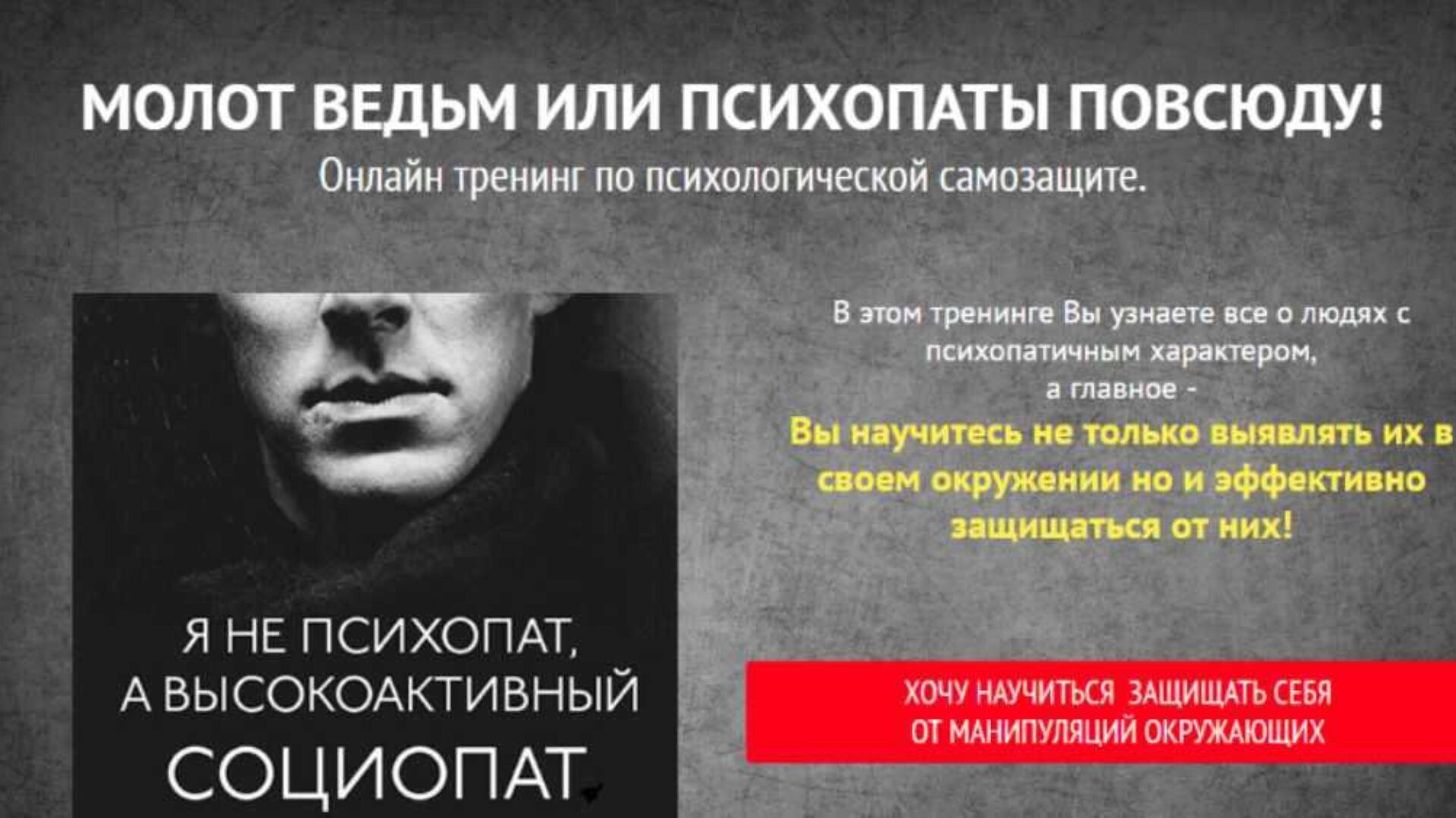 Отзывы о курсе «Молот ведьм или психопаты повсюду!» от Евгения Спирицы