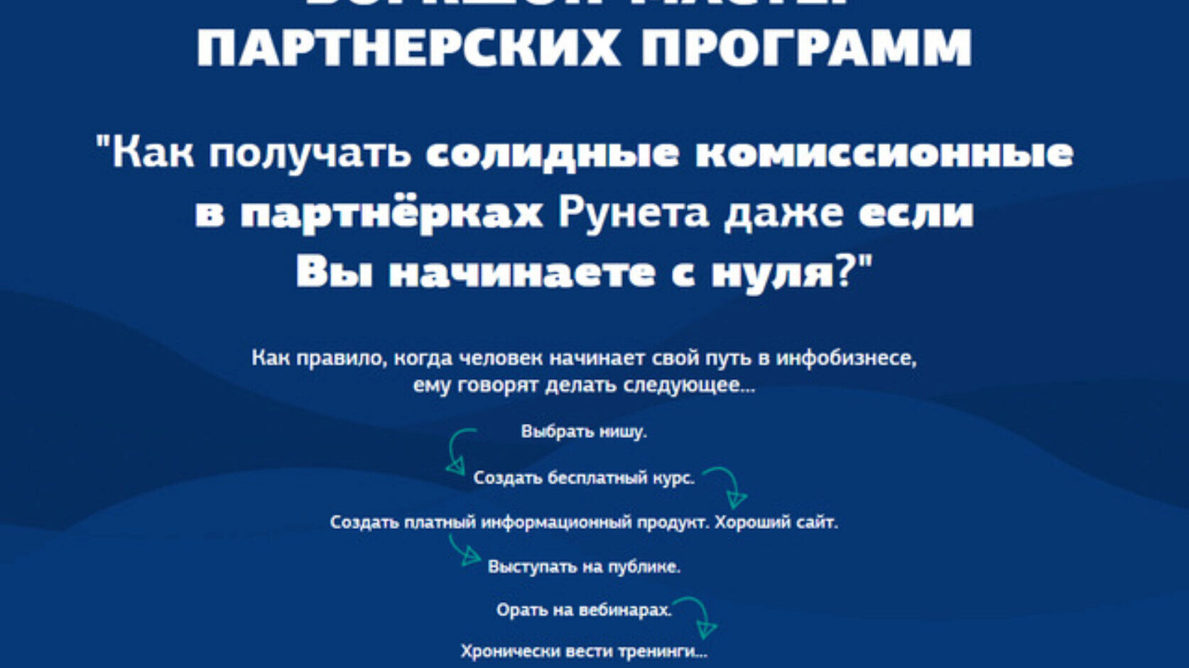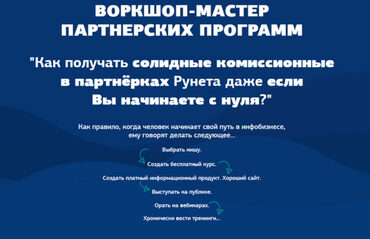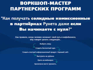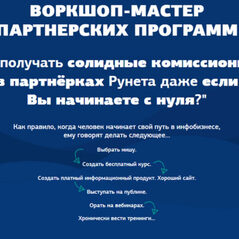 Курс Мастер партнёрских программ, автор Евгений Вергус. Воркшоп состоит из 10 практических занятий.
